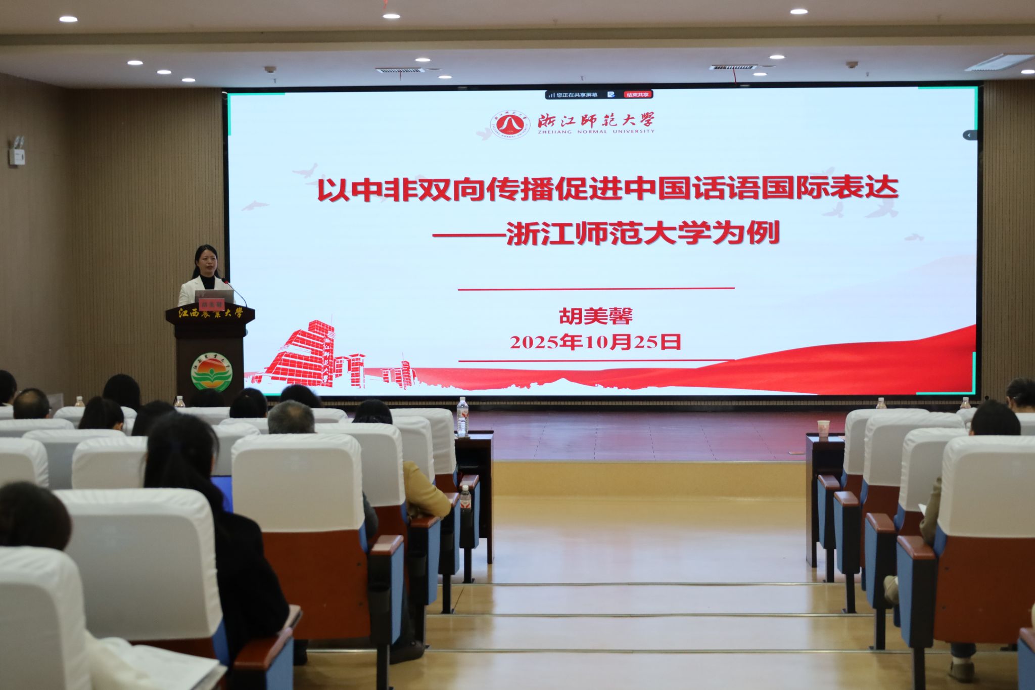大会共设4场主旨报告。浙江师范大学胡美馨教授以“以中非双向传播促进中国话语体系国际表达”为题,系统分享了该校依托非洲研究特色学科,在译介中国经验、培养知华人才、搭建中非智库网络等方面的创新实践,为地方院校服务国家对外传播战略提供了可复制、可推广的“浙师样板”。
