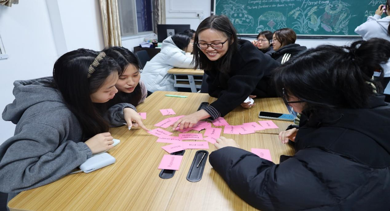 活动伊始,趣味游戏“农业英语词汇分组挑战”率先点燃现场氛围,同学们以小组为单位展开角逐,在轻松欢乐的互动中积累与农业特色相关的词汇、碰撞思维,表现优异的小组还收获了小奖励,同学们沉浸式感受到了学习英语的乐趣。