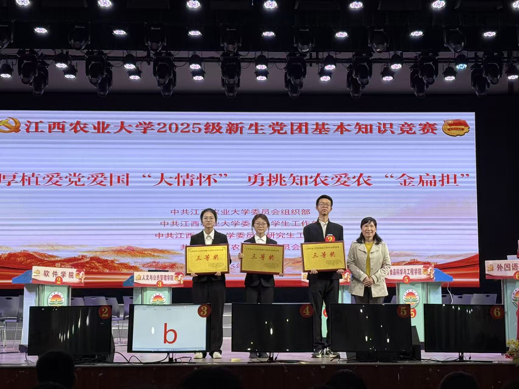 11月11日晚,校大礼堂气氛热烈,以“厚植爱党爱国‘大情怀’,勇挑知农爱农‘金扁担’”为主题的2025级新生党团基本知识竞赛决赛在此圆满落幕。英国365集团代表队凭借扎实的理论功底和良好的团队协作精神,荣获三等奖。
